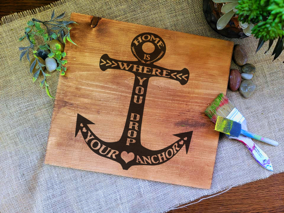 This is a 10×10 sign where our youth guests are able to sand, apply a paint technique of choice, a paint wash, choose their paint color for the design and finish their signs to take home the same day.