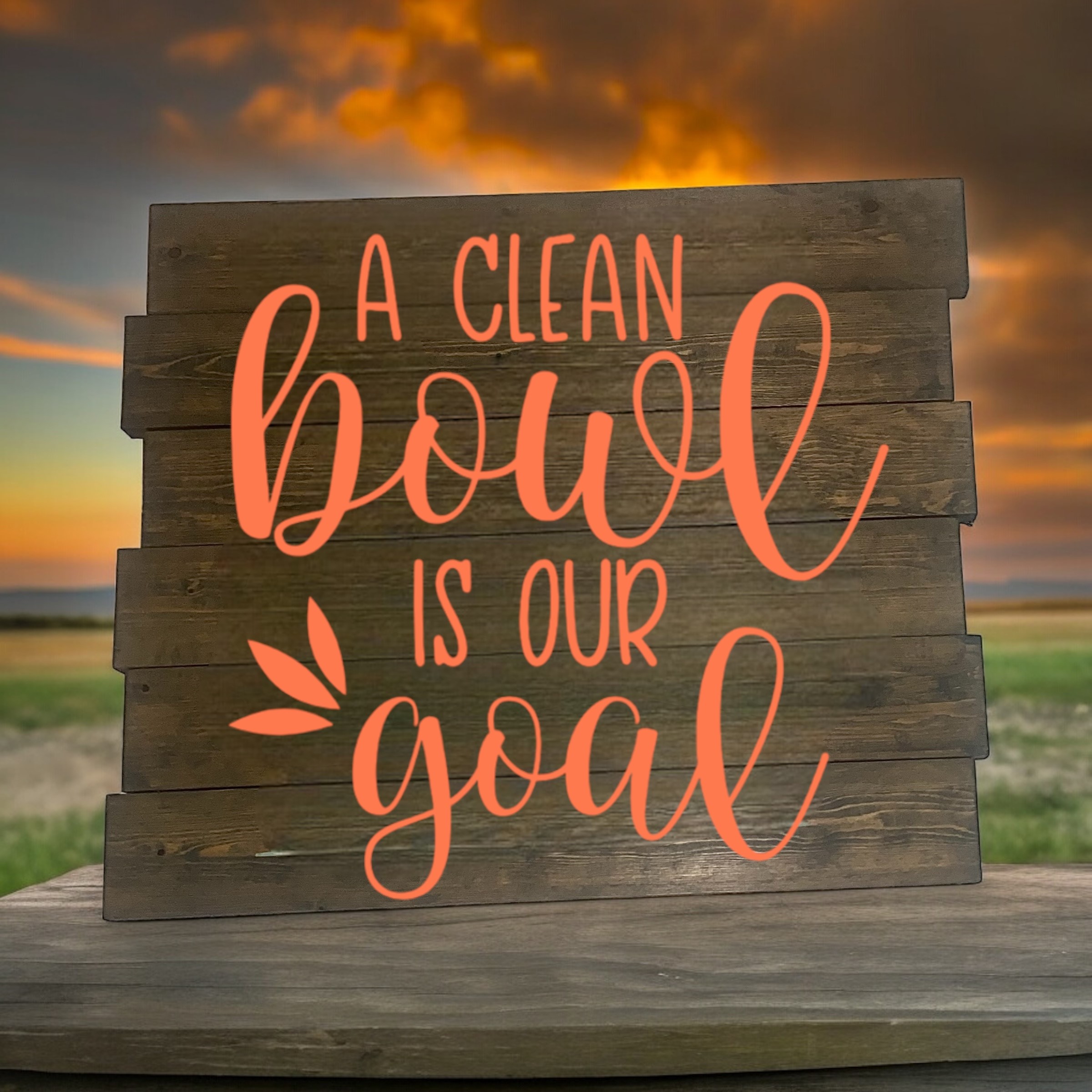 Come and join our event as we create the A Clean Bowl is Our Goal planked sign. This sign is 16 inches wide by 16 inches tall and can be customized with any stain and color you would like to appear on the sign. This item will take approximately three or four hours to create!