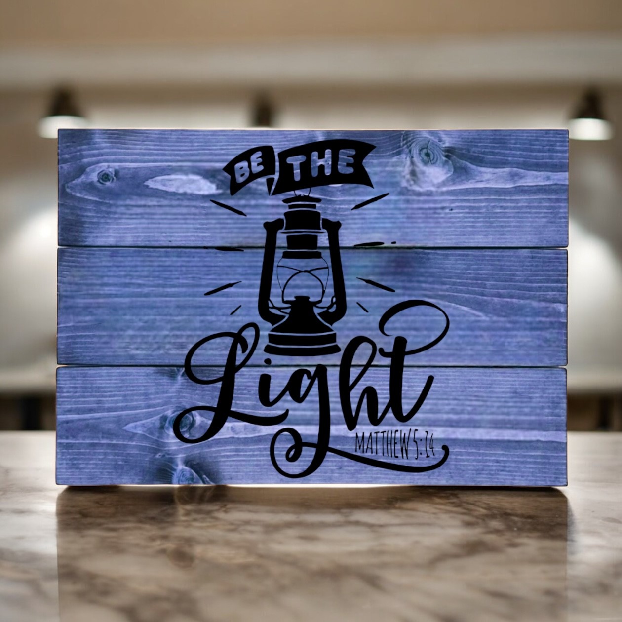 Come and join our event as we create the Be the Light planked sign. This sign is 16 inches wide by 16 inches tall and can be customized with any stain and color you would like to appear on the sign. This item will take approximately three or four hours to create!