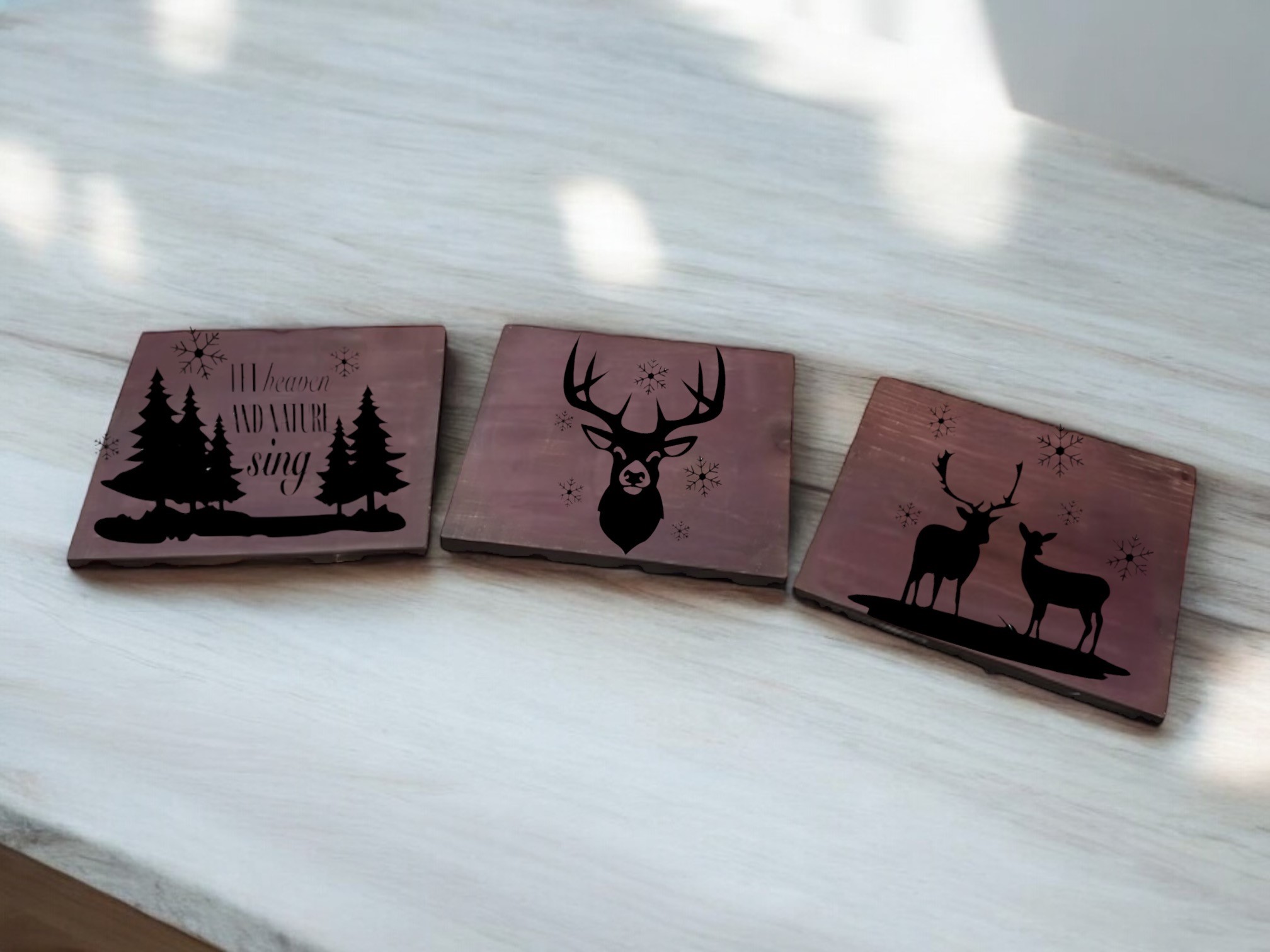 Come and join our event as we create the Christmas Deer Wood Trio. These signs are 12 inches wide by 12 inches tall each and can be customized with any stain and color you would like to appear on the signs. This item will take approximately three or four hours to create!