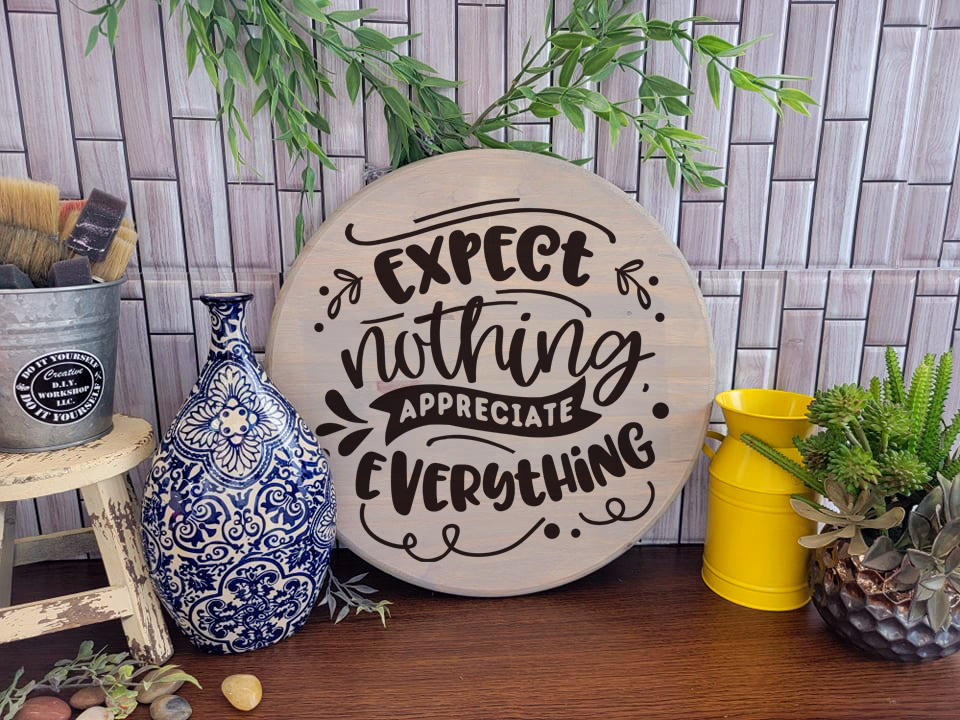 Come and join our event as we create this fun round sign. Upgrade the size or to a lazy Susan, round tray, or both! You can also make this a door hanger and hang it on your front door for all your neighbors to see. This basic sign is approximately 15 inches wide in diameter, and less than 1/2 and inch thick and can be customized with any stain and paint color you would like.