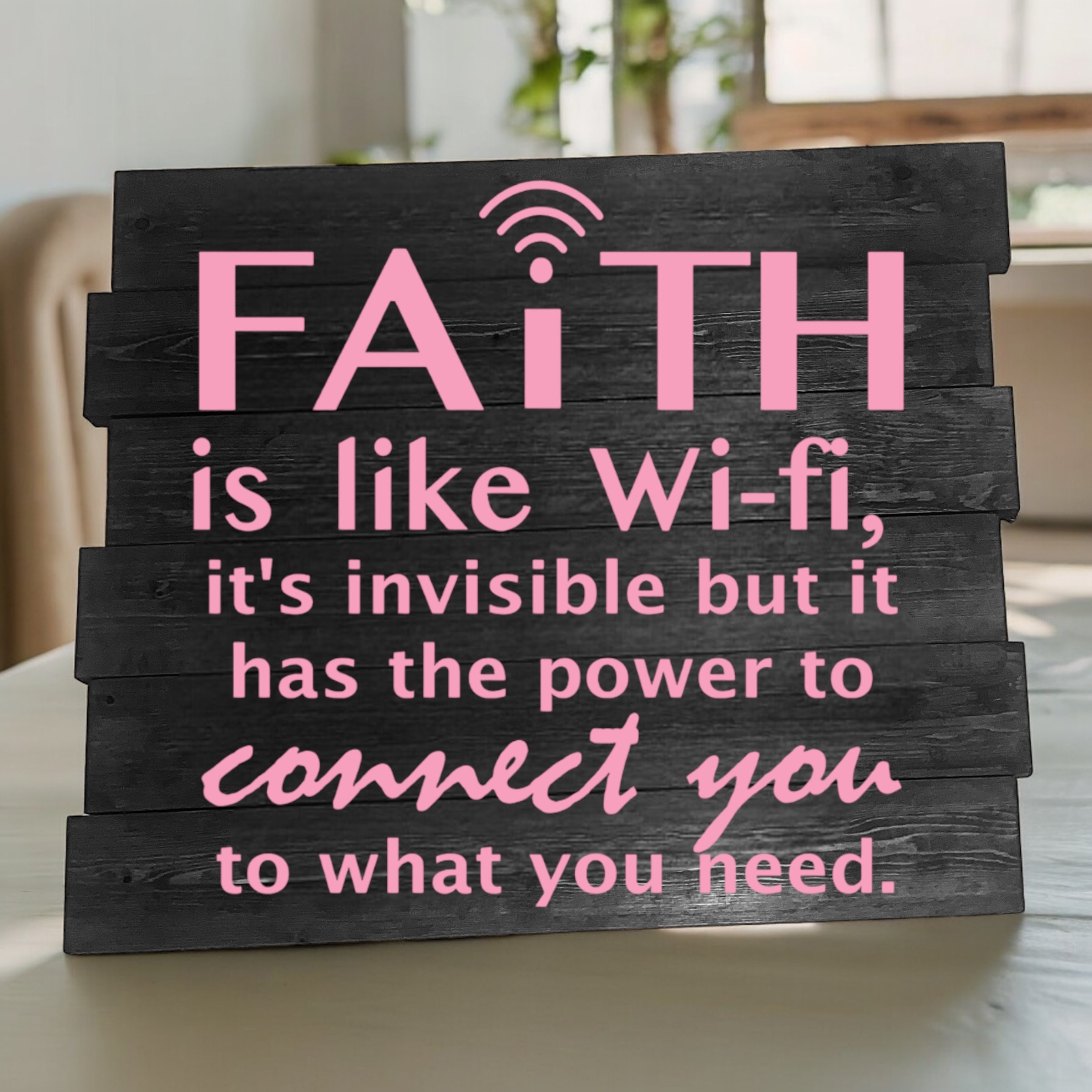 Come and join our event as we create the Faith is Like Wifi planked sign. This sign is 16 inches wide by 16 inches tall and can be customized with any stain and color you would like to appear on the sign. This item will take approximately three or four hours to create!