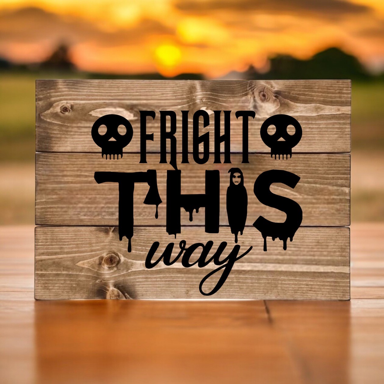 Come and join our event as we create the Fright This Way planked sign. This sign is 24 inches wide by 24 inches tall and can be customized with any stain and color you would like to appear on the sign. This item will take approximately three or four hours to create!