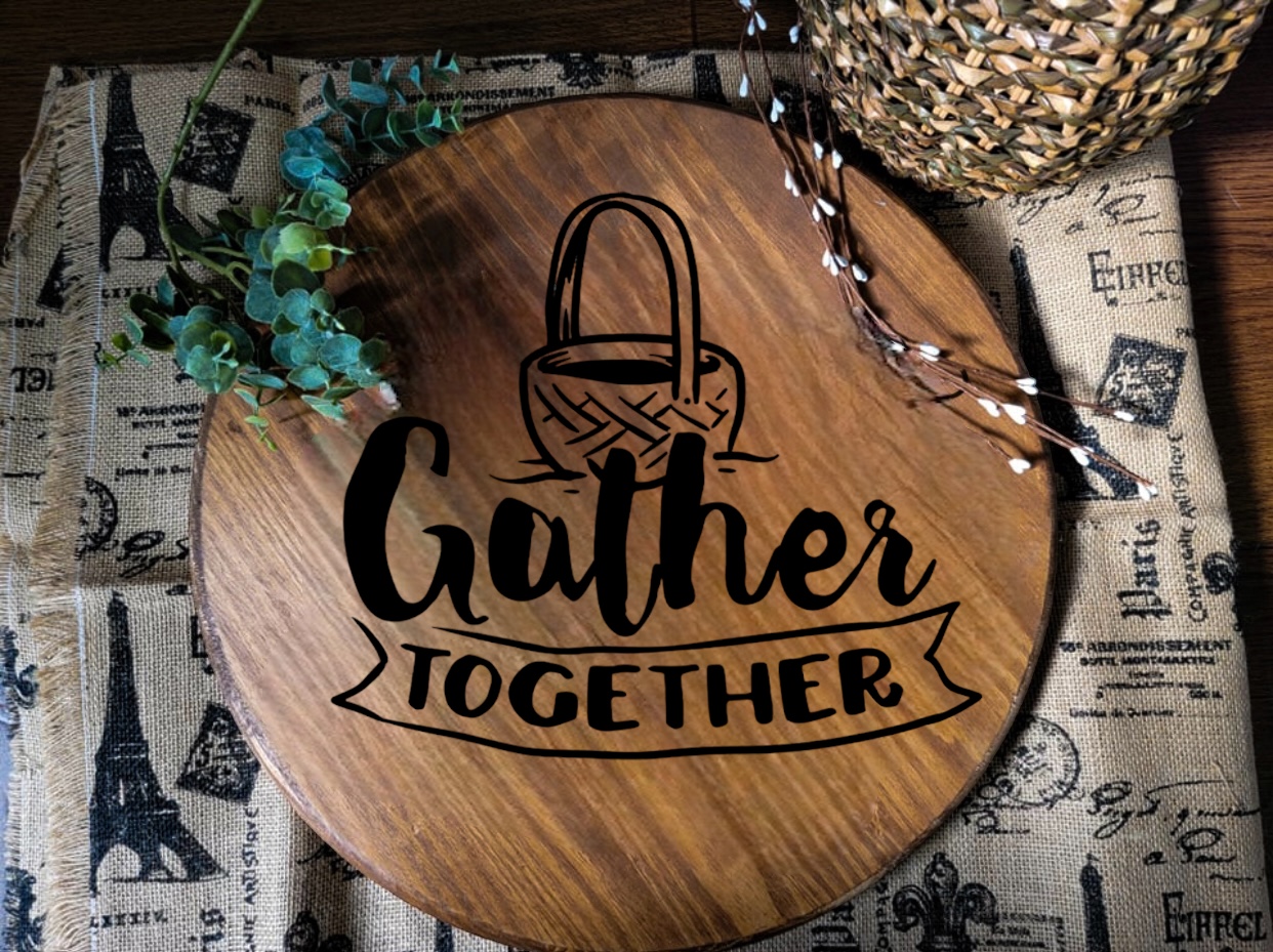 Come and join our event as we create this fun round sign. Upgrade the size or to a lazy Susan, round tray, or both! You can also make this a door hanger and hang it on your front door for all your neighbors to see. This basic sign is approximately 15 inches wide in diameter, and less than 1/2 and inch thick and can be customized with any stain and paint color you would like.
