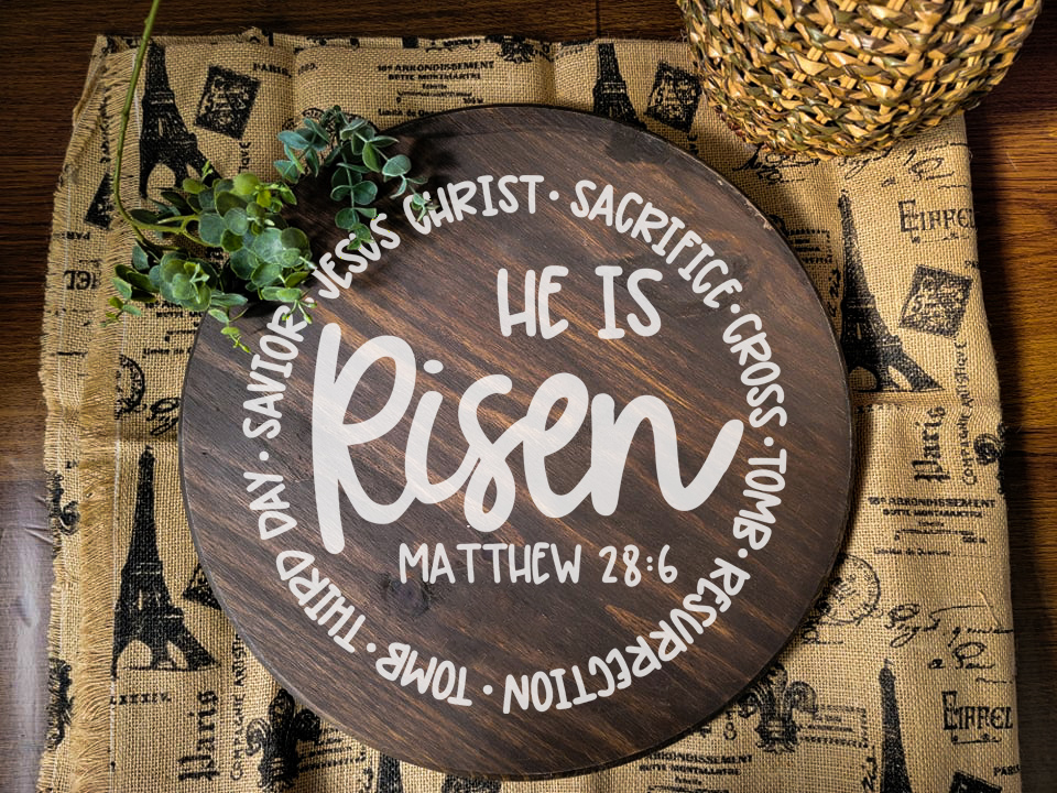 Come and join our event as we create this fun round sign. Upgrade the size or to a lazy Susan, round tray, or both! You can also make this a door hanger and hang it on your front door for all your neighbors to see. This basic sign is approximately 15 inches wide in diameter, and less than 1/2 and inch thick and can be customized with any stain and paint color you would like.
