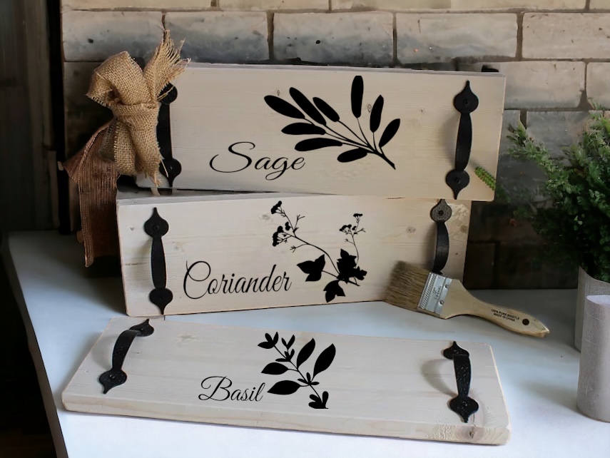 Come and join our event as we create the Herb Collection bundle of three mini trays. These mini trays are 6 inches wide and 16 inches long and can be customized with any stain and color you would like to appear on these trays. This item will take approximately three or four hours to create!