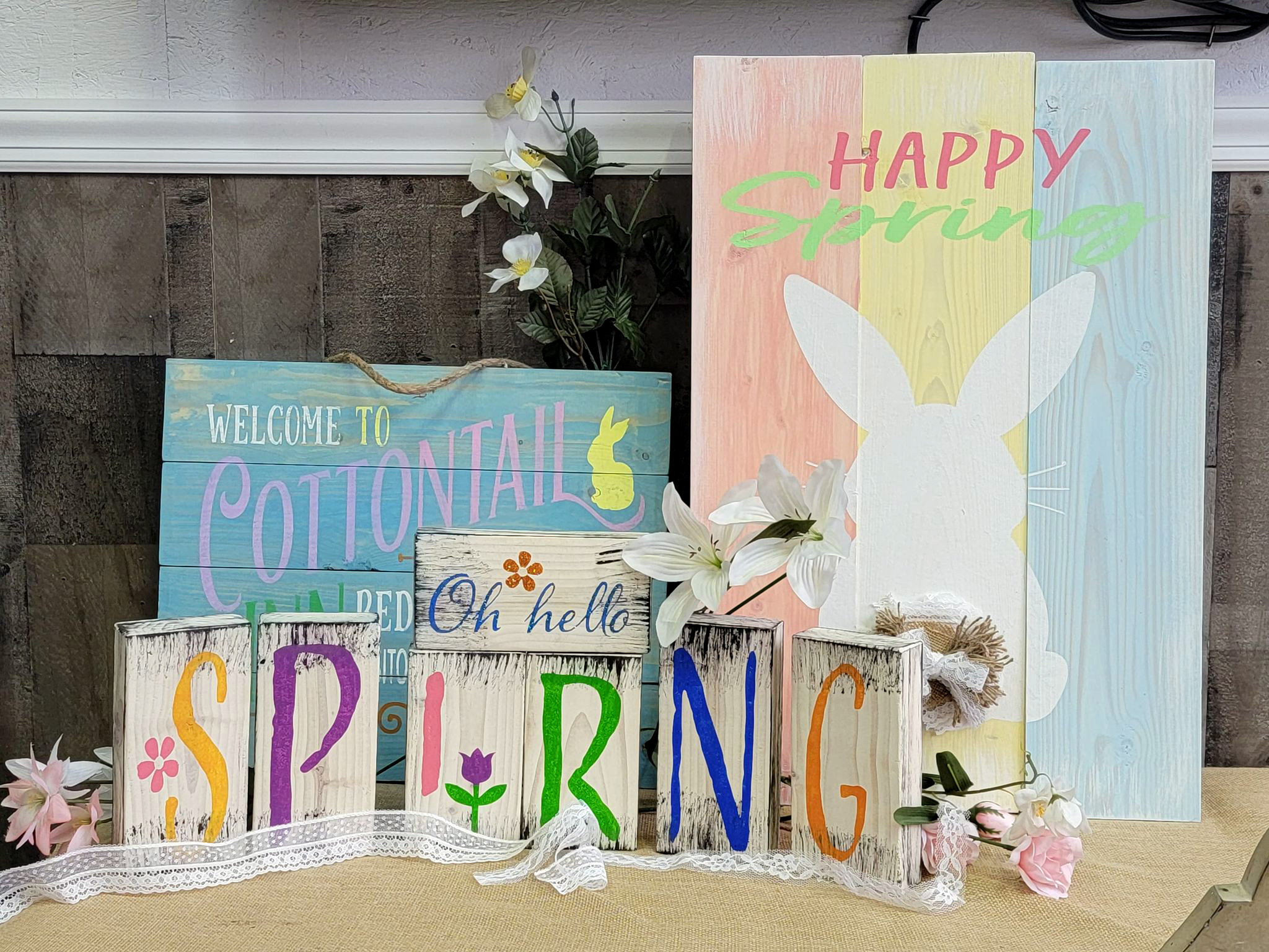 Come on in to create our new exclusive double sided shelf sitter! This block shelf sitter changes with the season, so you don’t have to pack it away so soon.