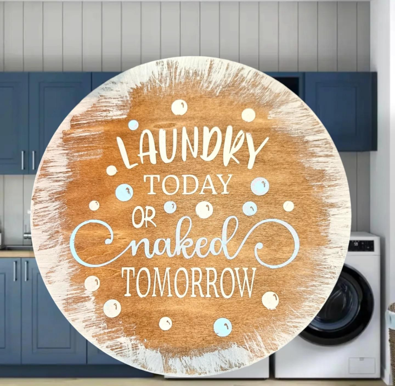 Come and join our event as we create this fun round sign. Upgrade the size or to a lazy Susan, round tray, or both! You can also make this a door hanger and hang it on your front door for all your neighbors to see. This basic sign is approximately 15 inches wide in diameter, and less than 1/2 and inch thick and can be customized with any stain and paint color you would like.