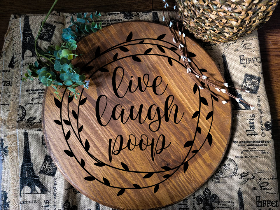 Come and join our event as we create this fun round sign. Upgrade the size or to a lazy Susan, round tray, or both! You can also make this a door hanger and hang it on your front door for all your neighbors to see. This basic sign is approximately 15 inches wide in diameter, and less than 1/2 and inch thick and can be customized with any stain and paint color you would like.