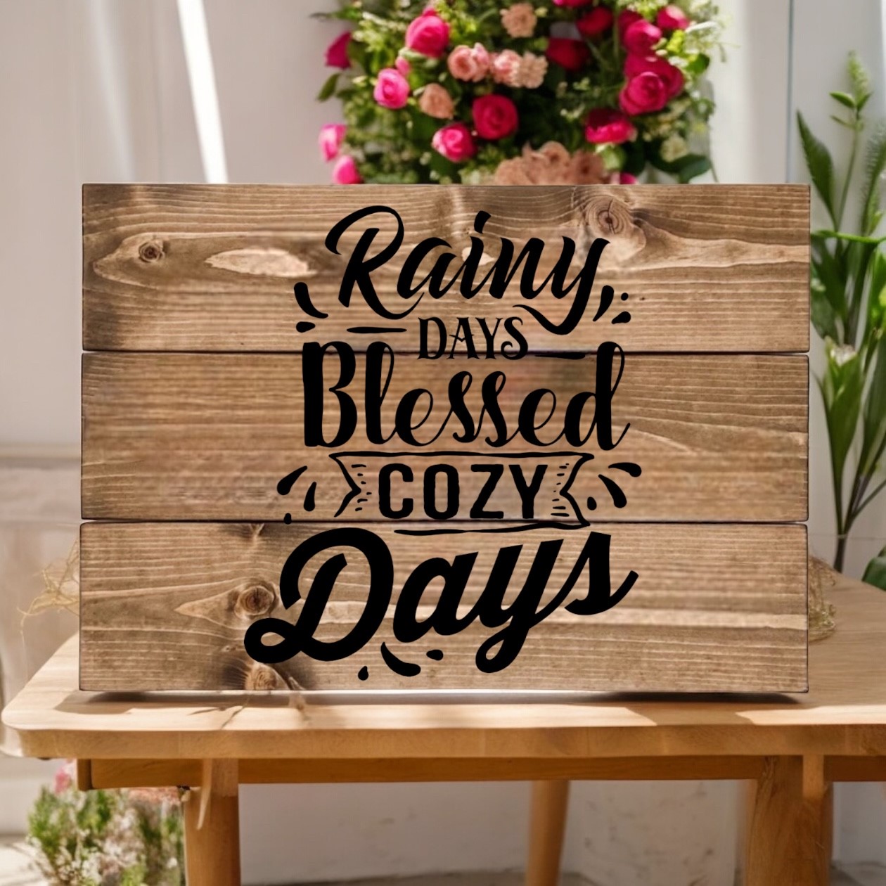 Come and join our event as we create the Rainy Days Blessed Cozy Days planked sign. This sign is 20 inches wide by 24 inches tall and can be customized with any stain and color you would like to appear on the sign. This item will take approximately three or four hours to create!