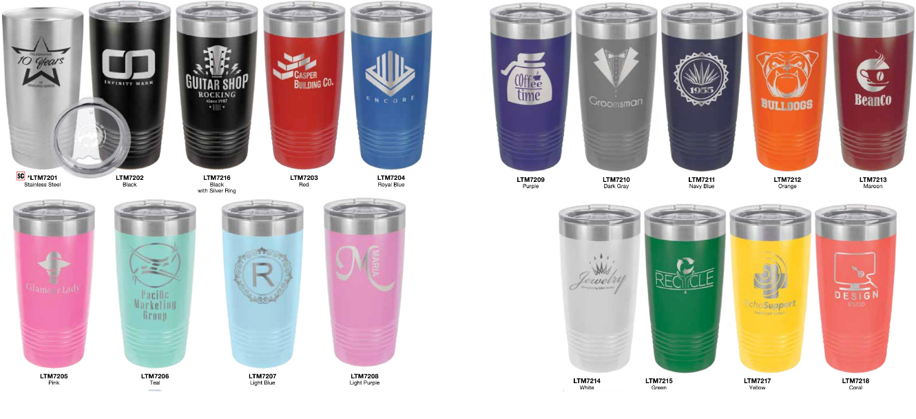 20 oz. and 30oz, Stainless Steel Polar Camel Tumblers feature double-wall vacuum insulation with a clear lid. The mug has a narrower bottom to fit most standard cup holders. It is 2X heat & cold resistant compared to a normal tumblers. Polar Camels are made from 18/8 gauge stainless steel (18% chromium/8% nickel) – also known as Type 304 Food Grade.